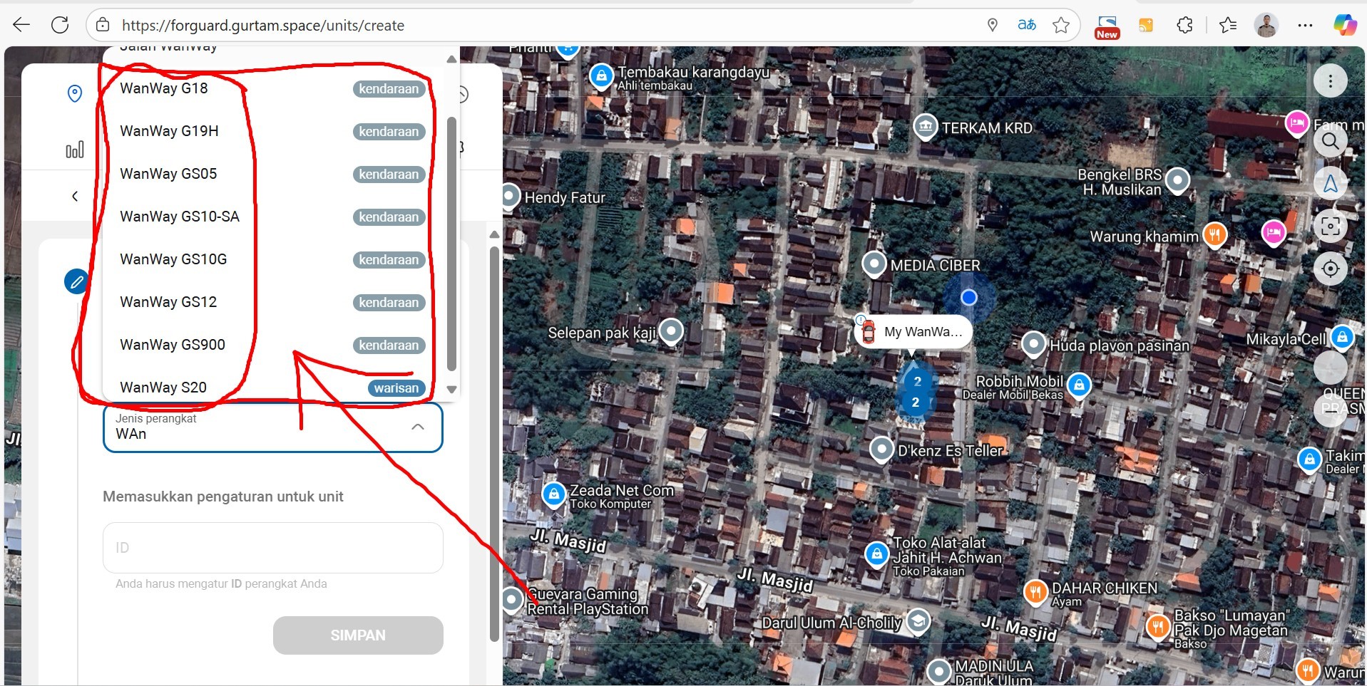 - Select “WanWay” as the device manufacturer